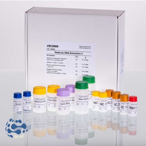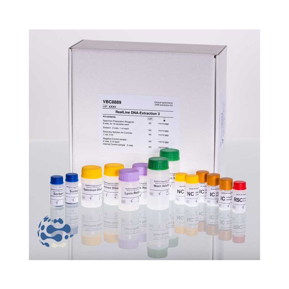 Le kit RealLine DNA Extraction 3 est destiné à l'extraction d'ADN bactérien, viral et humain à l'aide de billes magnétiques.