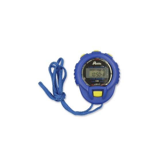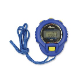 Le TChronomètre digital HS-12 est en plastique et comprend une batterie au lithium. Il est doté d'une horloge et alarme programmable et est livré avec un cintre bleu. Il peut mesurer le temps écoulé, le temps accumulé et le temps de la première et de la deuxième position. Il est également doté d'une horloge en mode 12 ou 24 heures, d'une date du calendrier et jour de la semaine, d'un chronomètre 23h 59min 59s, d'une résolution 1/100s jusqu'à 30min et 1s jusqu'à 24h et est résistant à l'eau.