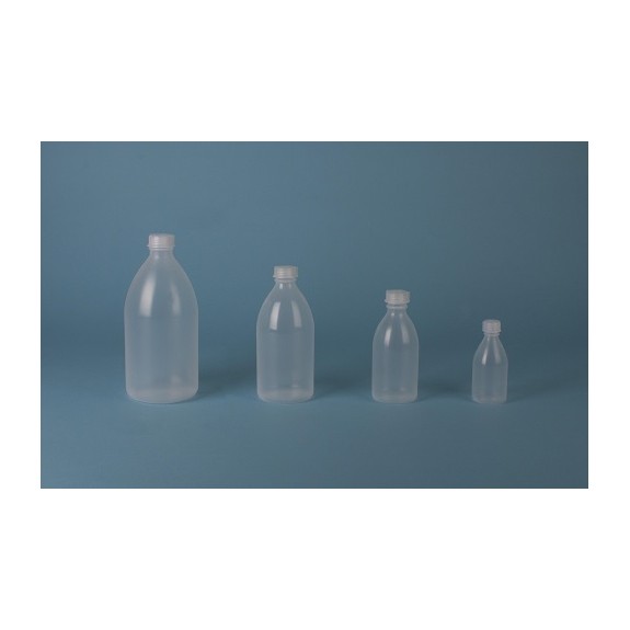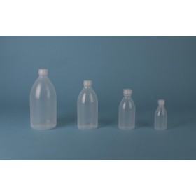 Flacon PP à col étroit 1000ml DIN GL28, ENDO - Ces flacons en polypropylène à col étroit sont conçus pour le stockage et le transport de produits chimiques et biologiques. Ils sont livrés avec un bouchon ENDO. Ces flacons sont livrés en lots de 50.
