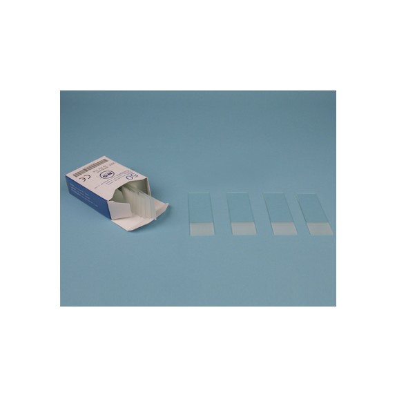 Ce produit comprend 50 lames en verre ordinaire de 76x26 mm et d'une épaisseur de 1,2 mm. Les bords sont à 45º d'angle et rodés, et les coins sont dépolis.
