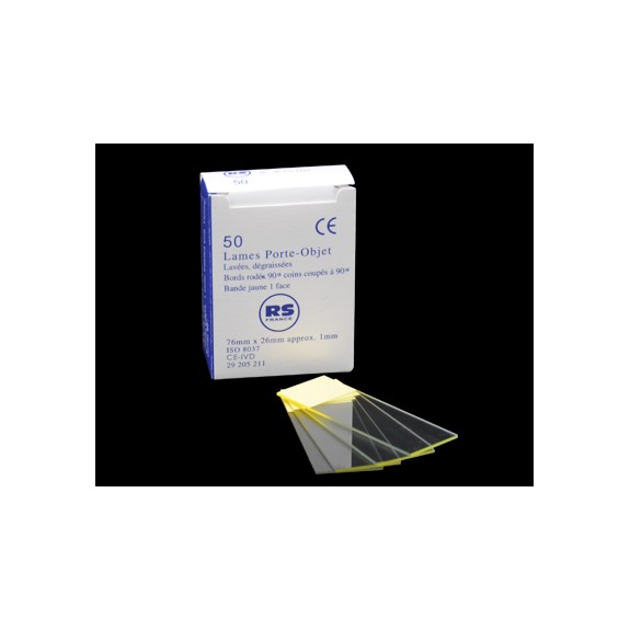 Lames 76x26mm, bords rodés, coins 90º, bande jaune s/50 (x1)