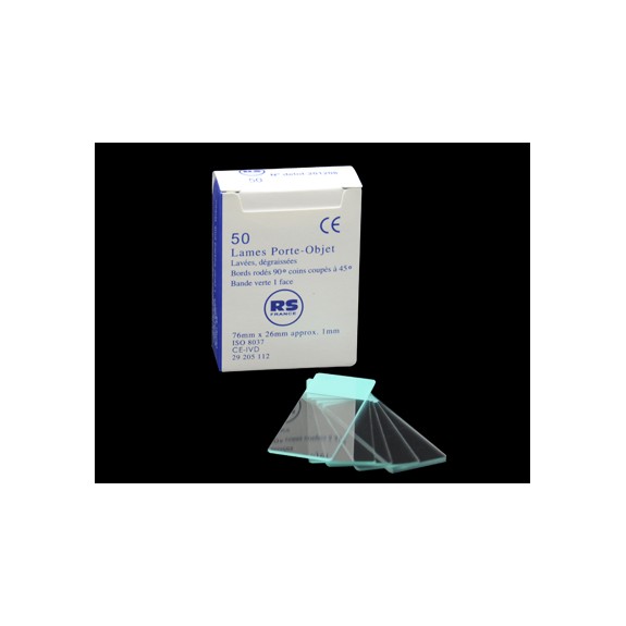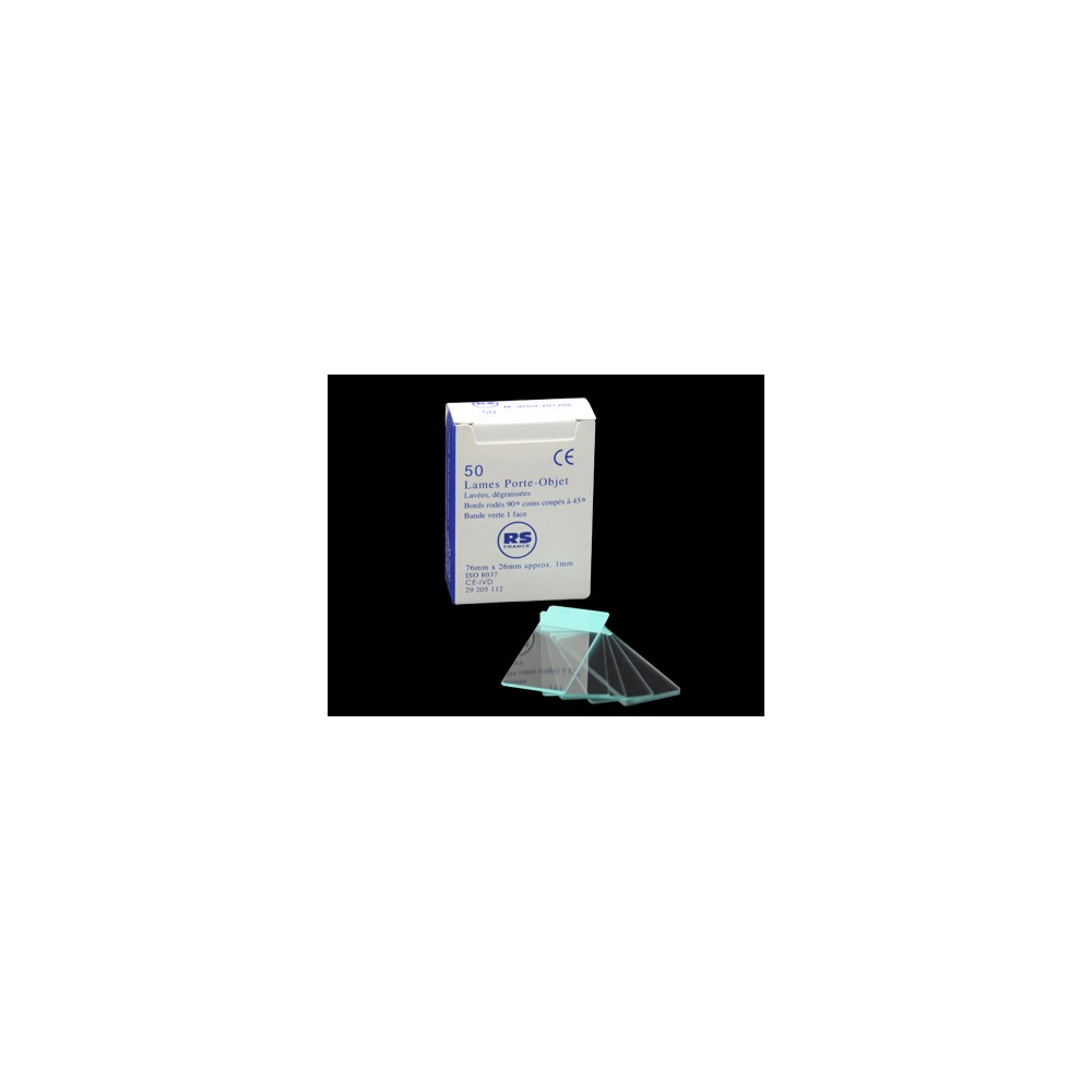 Lames 76x26mm, bords rodés, coins 45º, bande verte s/50 (x1).