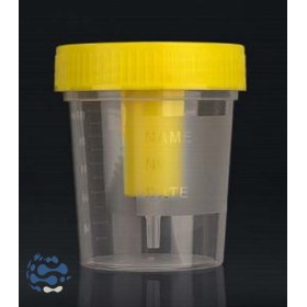 Ce pot à urine a une contenance de 120mL et se ferme grâce à un bouchon à vis pour éviter les risques de fuites. Il est doté d'un système d'aspiration pour tubes sous vide.