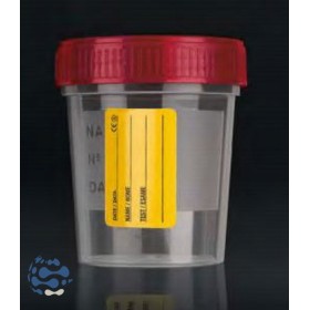 Pot à urine 120 mL stérile PP bouchon à vis, étiqueté (x300)
