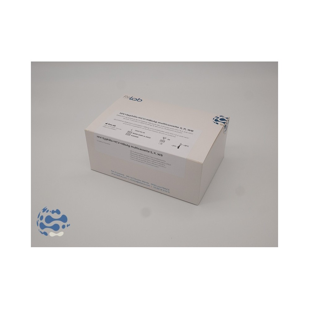 Le test HIV + Syphilis + HCV + HBsAg multicassette est utilisé dans le diagnostic d'une infection au virus de l'hépatite B, du VIH-1, VIH-2, de Treponema pallidum et du VHC.