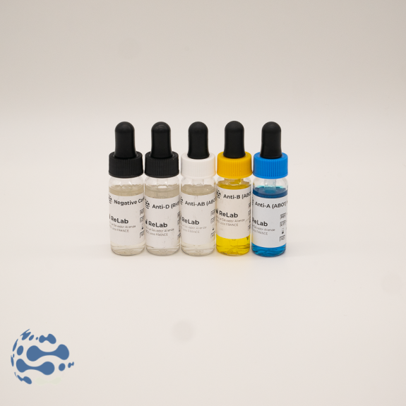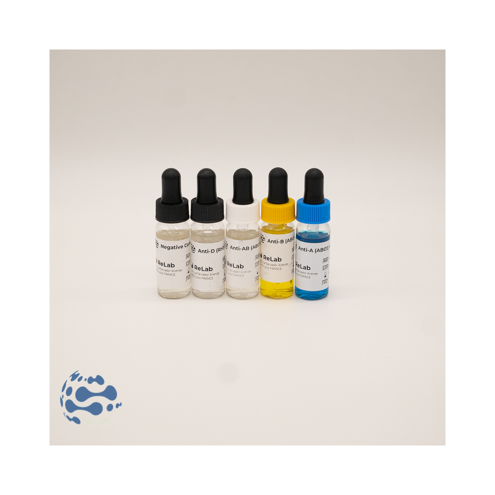 Le Group Kit Relab permet de déterminer la présence des antigènes A (ABO1), B (ABO2), D (RH1) à la surface des hématies.
