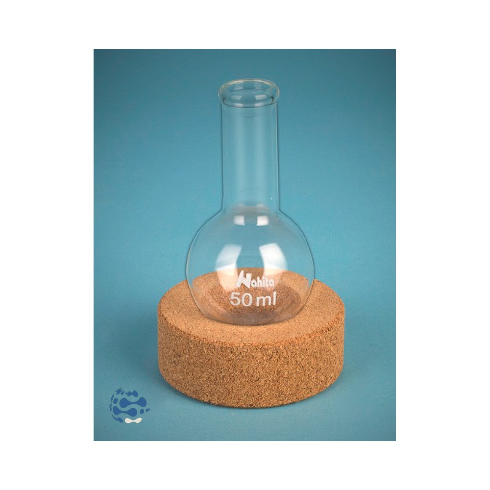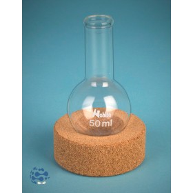 Fabriqué en verre borosilicaté, ce ballon fond rond est idéal pour des réactions de distillation et autres requérant un rechauffement uniforme de l'échantillon. Il nécessite un support pour se tenir et est doté d'une surface d'inscription blanche. Sa capacité est de 50mL et ses dimensions sont les suivantes : diamètre de la base 50mm, diamètre de la bouche 22mm et hauteur 105mm. Ce produit est vendu par lot de 12.