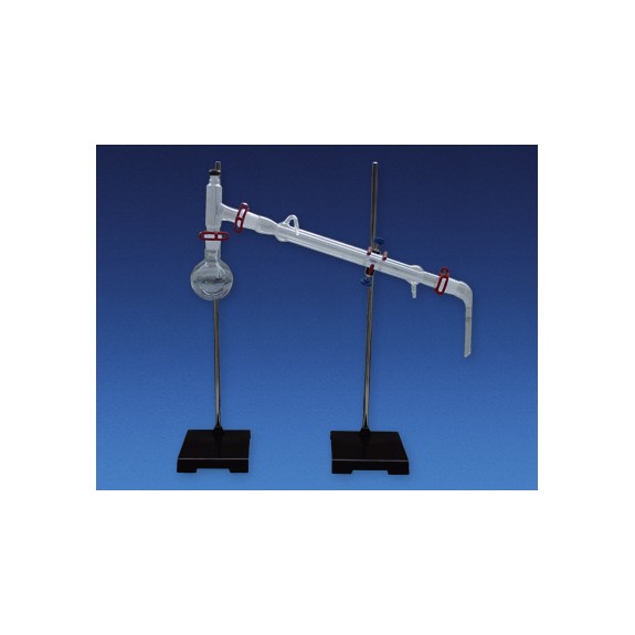 Cet appareil de KIPP 1000ml tub.bas.+bouch. est composé d'un ballon à fond rond de 250 ml (ref. PBL015), d'une pièce coudée à 75º (ref. PBQ028), d'un thermomètre -10º C à +110º C (ref. KJB011), d'un refrigérant Liebig, 300 mm (ref. PBN010), d'un terminal coudé, 100 mm (ref. PBQ031) et de 3 clips (ref. FCM010). Il est fabriqué en verre borosilicaté Rodages 29/32 et est livré avec une mallette de transport et de rangement.