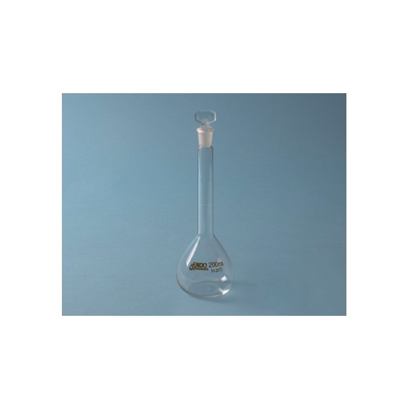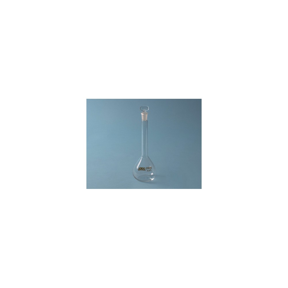 Fiole jaugées de 200 ml avec bouchon, pour le stockage et la manipulation de produits chimiques.